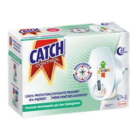 Découvrez le nouveau diffuseur électrique anti-moustiques Catch Control doté d’une fonction d’intensité réglable pour vous protéger efficacement contre les moustiques communs et les moustiques tigres, jusqu'à 45 nuits**. Une efficacité prouvée* même fenêtres ouvertes2 grâce à sa nouvelle formule développée par des biologistes pour 100% de protection et 0% de piqûres1.