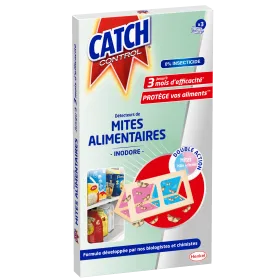 Catch Control Détecteurs de mites alimentaires permet de détecter les mites alimentaires dès leur première apparition. Grâce à sa double action, il vous permet de détecter les mites alimentaires mâles et femelles qui viennent se coller sur le détecteur et protège ainsi vos aliments. Ces détecteurs développés par nos biologistes et chimistes sont inodores et efficaces durant 3 mois.