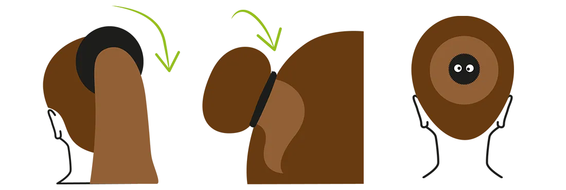 Enfilez le bun autour de la queue-de-cheval ;