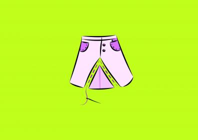 Décousez l’entre-jambe du pantalon et posez bien à plat : vous avez la forme de votre jupe, mais avec l’entre-jambe « vide » qui forme un triangle.