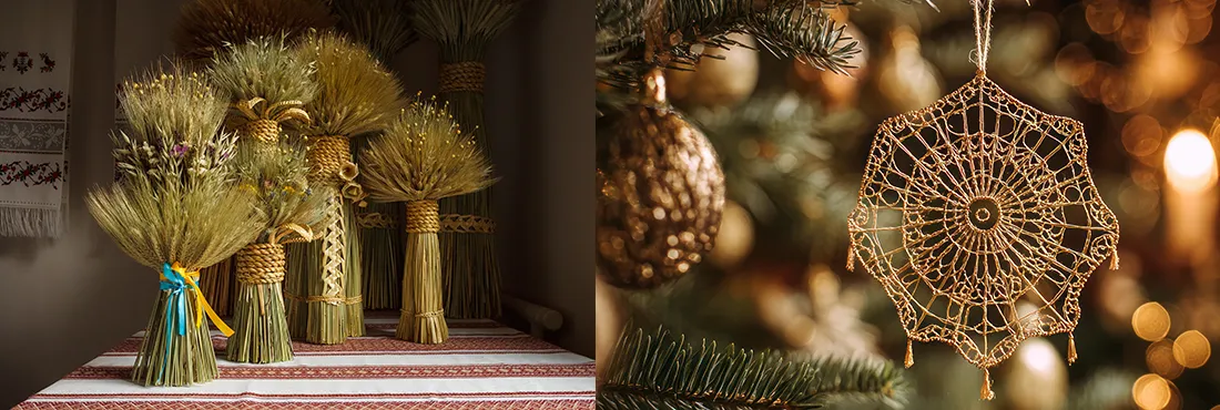 Ukraine : les toiles d’araignées (pavuky) ; le bouquet de blé (didukh).