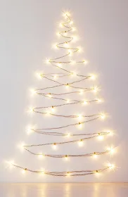 Une guirlande lumineuse qui dessine un sapin sur le mur.