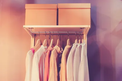 Tout est question de rangement ! On peut s’amuser à classer ses vêtements en dégradé de couleurs, ou créer un effet arc-en-ciel si l’on porte des couleurs pop (avec le retour des beaux jours par exemple). Résultat : un dressing digne d’un vrai designer !