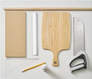 Commencez par découper la baguette de bois de la même largeur que votre planche.