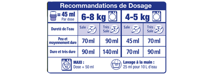 • Lavage à la machine 45ml par dose