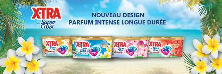 X•TRA par Super Croix combine le meilleur des deux univers : la puissance d’un lavage impeccable signée X•TRA et les parfums iconiques de Super Croix afin de vous offrir un linge éclatant et intensément parfumé.