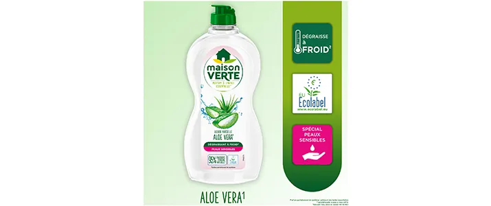 Le Liquide vaisselle Maison Verte Aloé Vera¹, convient à un usage quotidien, y compris pour les peaux les plus sensibles.